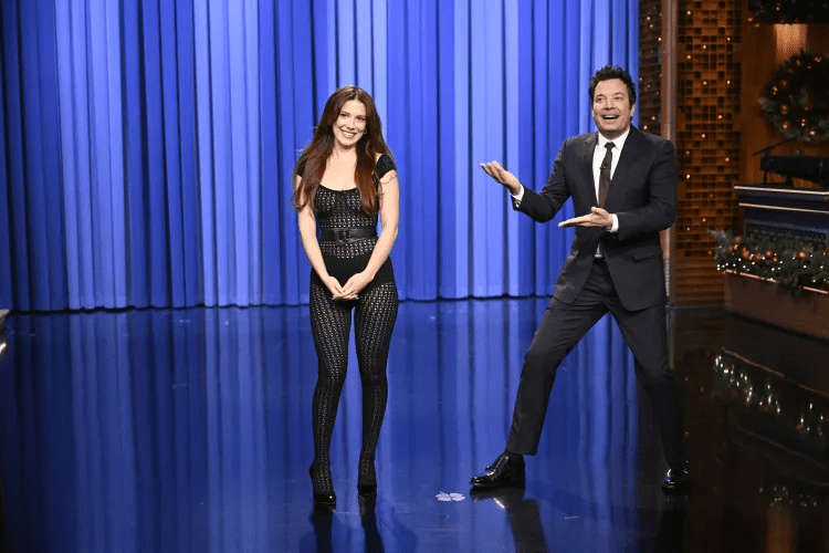 The outfit was part of her co‑hosting gig on The Tonight Show Starring Jimmy Fallon, where she joined Fallon for a festive segment unveiling twelve days of Christmas sweaters. But while the sweaters were playful, Brown’s catsuit was pure NSFW glamour, cementing her place as one of Hollywood’s most daring young fashion icons.