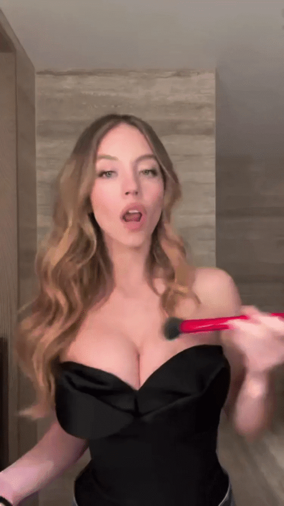 Wearing a low-cut black corset, Sydney used a red brush to contour her cleavage, creating a sculpted, lifted look that highlighted her bust. The clip was set to Addison Rae’s hit track Fame Is A Gun, adding a playful vibe to the already eye-catching video.