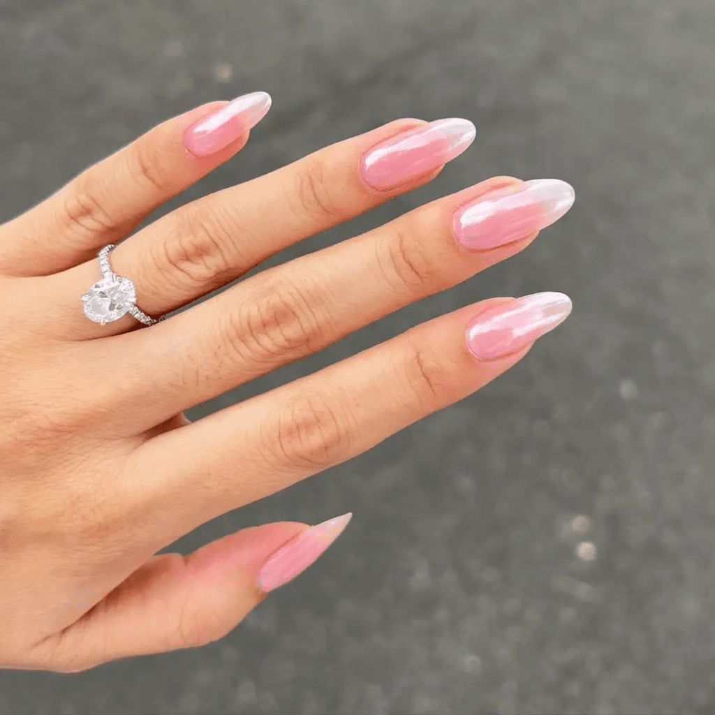 Soft pinks, milky tones, and simple French tips work best.