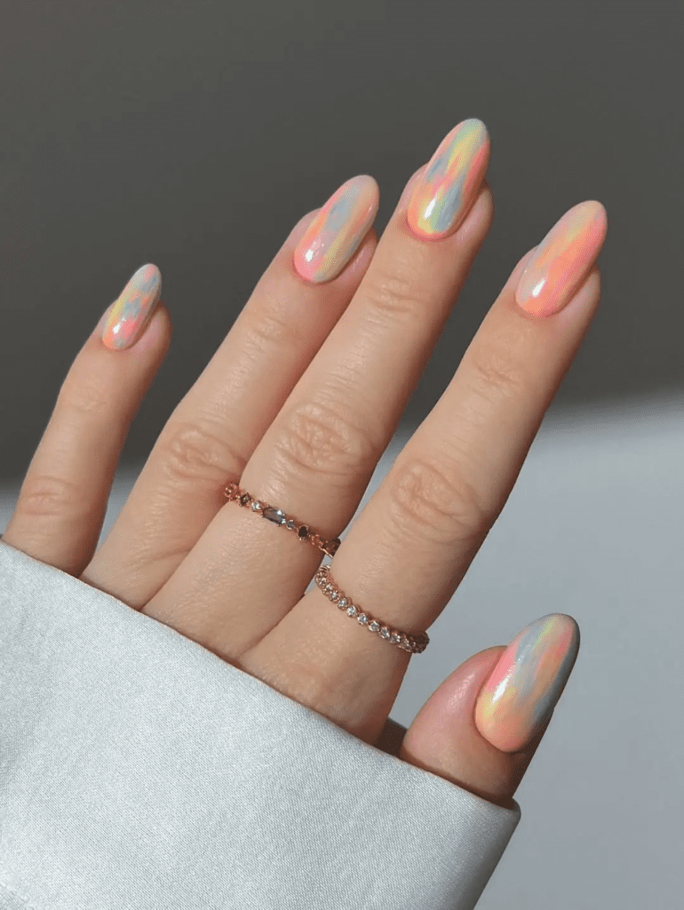 This design mixes soft pastel colors together, creating a dreamy look like a sunset or tie-dye.