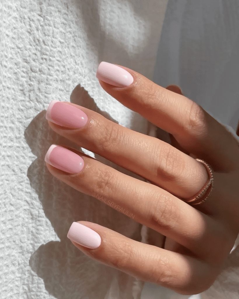 Short nails with two shades of pink—one soft and one slightly brighter.